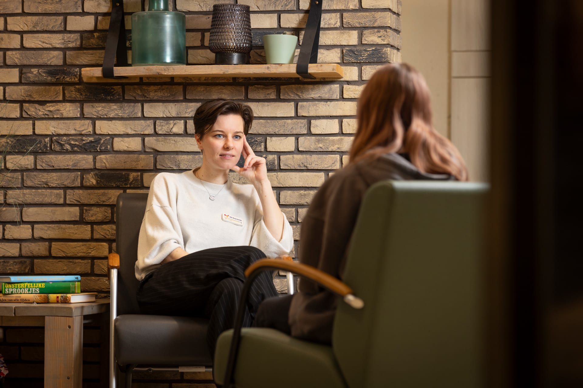 ‘Als ANIOS werk ik onder supervisie van een psychiater voor het psychiatrische deel en een huisarts voor het somatische. Ik kan altijd bij hen binnenstappen. Bij andere organisaties gaat dat vaak minder soepel is mijn ervaring. In principe doe ik zoveel mogelijk zelf bij mijn cliënten, maar als ik iets niet weet of twijfel klop ik bij hen aan. Met bepaalde dingen moet ik altijd langs de psychiater. Bijvoorbeeld als iemand suïcidaal is of heftige dingen zegt. Samen kijken we dan of ik het zelf af kan of dat zij de cliënt ook wil zien. De psychiater, de huisarts, de verpleegkundig specialist en ik zijn de behandelaren binnen Klinisch herstel. Daarnaast vorm ik ook een duo met de casemanagers die de meer praktische zaken rond cliënten regelen. Behandelplannen stel ik samen met de psychiater en de casemanager op.’